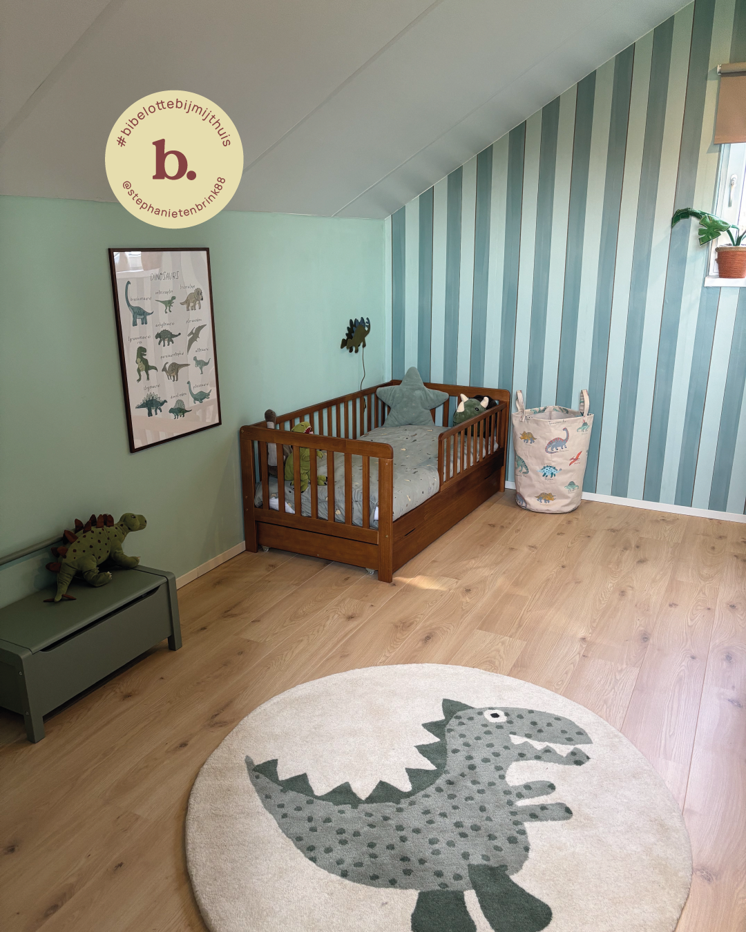 Wallpaper Nola salmon has a ton-sur-ton color combination. One stripe is printed full-color, while the other looks like someone painted with a block brush. Result: a wall with caracter and an artistic wink.