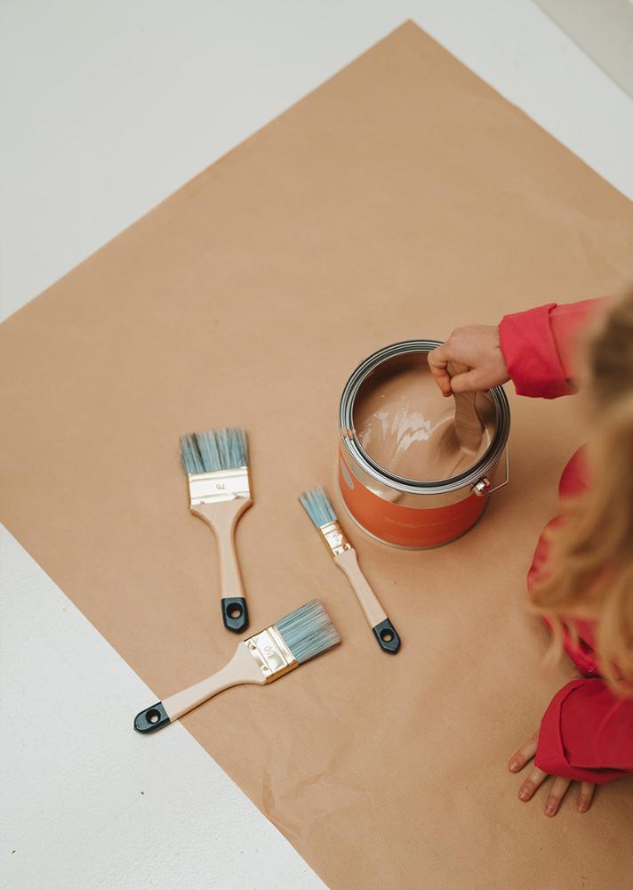 Een pot verf bestaat uit een aantal bestanddelen die je voordat je begint echt goed door moet roeren. Vaak geloven we het wel na een paar rondjes maar geloof ons; ga die extra mile en je wordt beloond. Pigmenten en vulstoffen zijn namelijk elementen die snel naar de bodem van het blik zakken terwijl andere stoffen juist geneigd zijn naar boven te kruipen. Essentieel dus dat roeren! Pak er het liefst een plat houten roerstaaf bij en pak ook zeker de bodem mee. Het liefst een minuut lang voor je lekker aan de slag kan.
